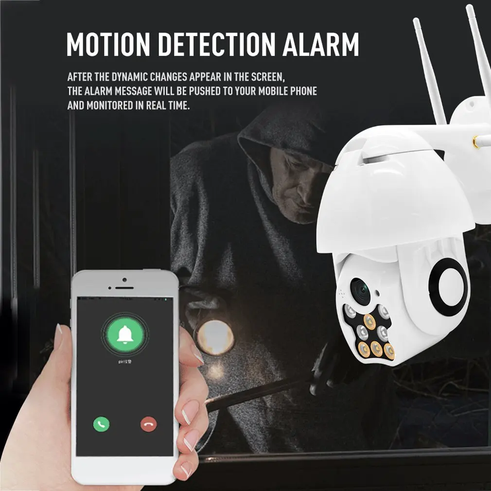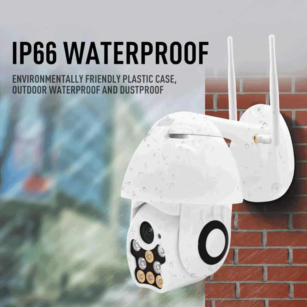 Outdoor Waterproof Wireless Wifi Security Camera 360 degree Rotation Ball Machine Network Surveillance Camera 1080PFeatures:1. HD 1080P Resolution: This product has a 2.0MP high-definition camera, which supports clear and delicate images, so that you can clearly see every detail.2. Recording function: Most cameras do not support recording, but this product can record the sound around the camera with clear listening effect to help you save the voice evidence.3. Motion detection: This product has a motion detection function. Once a thief enters the house, it will immediately send an alarm message to your mobile phone, which is very safe.4. PTZ control: This product can rotate 360 degrees, so you can control the rotation angle of the gimbal through the mobile phone and check the direction you want to see.5. Real-time two-way audio: This product supports real-time two-way audio function, and can intelligently reduce noise and clear sound, so that you can deal with various problems anytime and anywhere, helping you to get rid of the Bad guys.Descriptions:1. This product supports mobile phone iOS, Android system, mobile phone remote monitoring, and supports infrared night vision function, so you can view clear pictures and monitor your home security at any time.2. This product is suitable for commercial gifts, anniversary, birthday gifts, employee benefits and other occasions, it is very suitable for your loved ones, friends, employees and so on.Specifications:Color: WhitePlug type: US 110V, EU 220V, UK 220V, AU 220VSize: 200*100*80mmModel: QJ-V2Pixel: 2.0MPStyle: wireless ball machineImage sensor: CMOSHorizontal resolution: 1080P (TVL)Minimum illumination: 1.0 (Lux)Resolution: 1080PLens: 3.6 (mm)Signal to noise ratio: > 80 (db)Working temperature: -10-70 (°C)Backlight compensation: noneSize: 1/3 (inch)Power supply voltage: 12V (V)Electronic shutter: noneAlarm function: Supportmaterial: plastic Use environment: indoor and outdoorEffective distance: 50 metersSurveillance camera lens: HDLens focal length: 3.6PTZ control: supportComputer Monitoring: SupportInfrared light illumination distance: 15 metersPackage Included:1 set x Outdoor Security CameraNotes:1.Due to the difference between different monitors, the picture may not reflect the actual color of the item. We guarantee the style is the same as shown in the pictures.2.Please allow slight dimension difference due to different manual measurement.