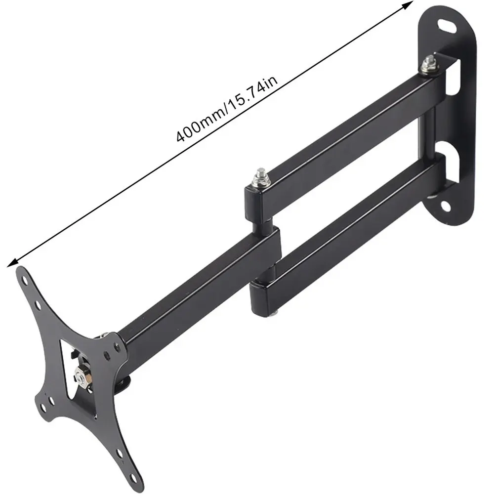 Universal 14-27 Inch Lcd Computer Monitor Rack Telescopic Rotating Display Bracket Swing Rack Wall MountFeatures:1. Retractable rotation: three-level 90° infinitely rotating shaft, the rotation is more flexible, to meet the needs of different angles.2. Anti-corrosion paint: It adopts thick paint layer and professional anti-corrosion coating. The surface is smooth and delicate, and it is durable and durable.3. Butterfly flap design: The hanging board adopts the butterfly wing design and adopts the lacing process to make the installation more beautiful and more forceful.4. Three-stage shaft/reinforcement sleeve: Two-section telescopic arm, three-stage shaft, and flexible steering is more flexible and convenient.5. Free telescopic adjustment: Freely telescopic design, only 40mm from the wall, up to 400mm.