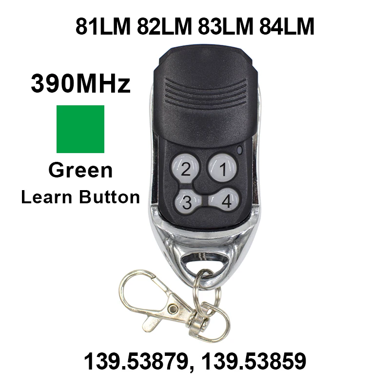 Key Chain Remote Control 4 Buttons ONLY IF THE GARAGE DOOR UNIT IS MADE IN 1993 TO 1997· 81LM 82LM 83LM 84LM REPLACEMENT REMOTE compatible with LiftMaster and Chamberlain 390Mhz billion code systems. GREEN LED LEARN LIGHT ONLY on the back of the motor.